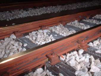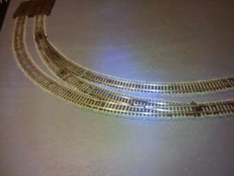 Ballast Ballasting is a skill that requires great patience as care must be taken to prevent poor running and damage to the track. A neat finish requires many hours of dedication returning to the ballasted area several times as the adhesive dries to ensure a tidy finish. Airbrushing a general grime over the ballast improves its appearance, emphasising areas where grime would accumulate, or where oil would be deposited from standing locomotives. Never use just one ballast colour as this tends to look poor on a layout, try and blend a few colours if possible or buy a mix e.g. Woodland Scenics Grey Blend. Be careful of the cheaper granite ballasts, they tend to 'green' once adhesive is used. Use a quality ballast e.g. Woodland Scenics for improved grain size (fine for N gauge, medium for H0/00 and coarse for 0) and excellent colour stability. A good quality sheet or strip underlay should be used beneath the track to act as a sound damper and to visually represent the ballast profile. The most appropriate materials for this purpose are sheet cork or dense foam. Once ballasted the appearance of your layout can be improved by weathering your track and ballast as shown in the image below. Please see our TRACK & BALLAST WEATHERING section for more information.