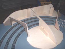 construction baseboard supporting track beds and cut out for tunnels