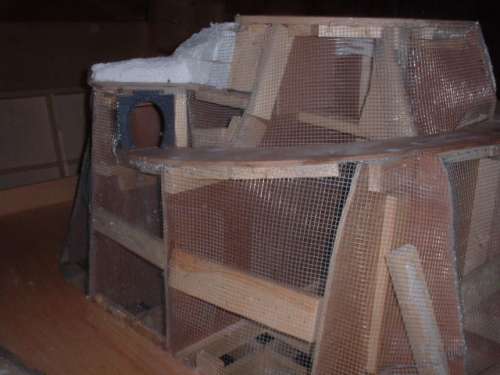 COMPLETING THE STRUCTURAL WORKOnce the structural support is in place a covering is required to form the base landscape. Where timber supports have been used we prefer to form the landscape from 6mm square galvanised pet mesh covered with plaster bandage. This mesh is more expensive than chicken wire but is fine enough to prevent the plaster bandage sagging into the mesh which may show on the finished product. Where mesh work cannot be used we follow the method outlined above using sheets of 50mm polystyrene sheet obtained from builders merchants. The images below show how the above baseboards move towards completion using these methods.